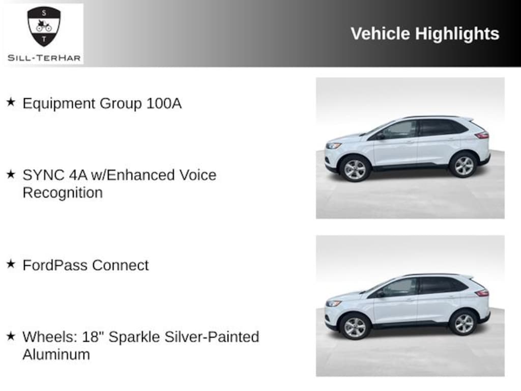 Under the hood, this Edge SE is powered by the efficient EcoBoost 2.0L I4 GTDi DOHC Turbocharged VCT engine, paired with an 8-Speed Automatic transmission and All-Wheel Drive. With an impressive 21 MPG in the city and 28 MPG on the highway, this SUV delivers exceptional fuel economy without sacrificing power or capability.