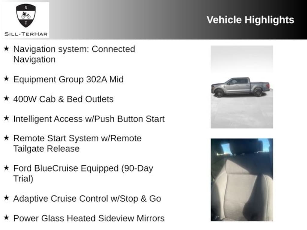 This 2024 Ford F-150 is rare!, 400W Cab & Bed Outlets, Adaptive Cruise Control w/Stop & Go, Cloth 40/Console/40 Front Seats, Equipment Group 302A Mid, Ford BlueCruise Equipped (90-Day Trial), Heated Front Seats, Intelligent Access w/Push Button Start, Navigation system: Connected Navigation, Power Glass Heated Sideview Mirrors, Power-Sliding Rear Window, Remote Start System w/Remote Tailgate Release, Wheels: 18" Chrome-Like PVD.
