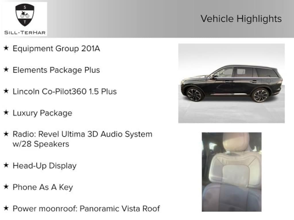 This 2023 Lincoln Aviator is rare!, 30-Way Perfect Position Seats w/Active Motion, Elements Package Plus, Equipment Group 201A, Head-Up Display, Lincoln Co-Pilot360 1.5 Plus, Luxury Package, Phone As A Key, Power Liftgate, Power moonroof: Panoramic Vista Roof, Radio: Revel Ultima 3D Audio System w/28 Speakers, Rear Door Sunshades, Wheels: 22" Bright-Machined Aluminum.