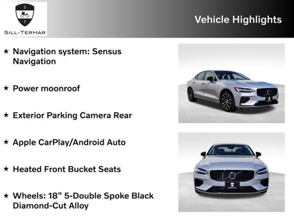 This 2024 Volvo S60 Recharge Plug-In Hybrid is rare!, Apple CarPlay/Android Auto, Exterior Parking Camera Rear, Heated Front Bucket Seats, Navigation system: Sensus Navigation, Power moonroof, Wheels: 18" 5-Double Spoke Black Diamond-Cut Alloy.