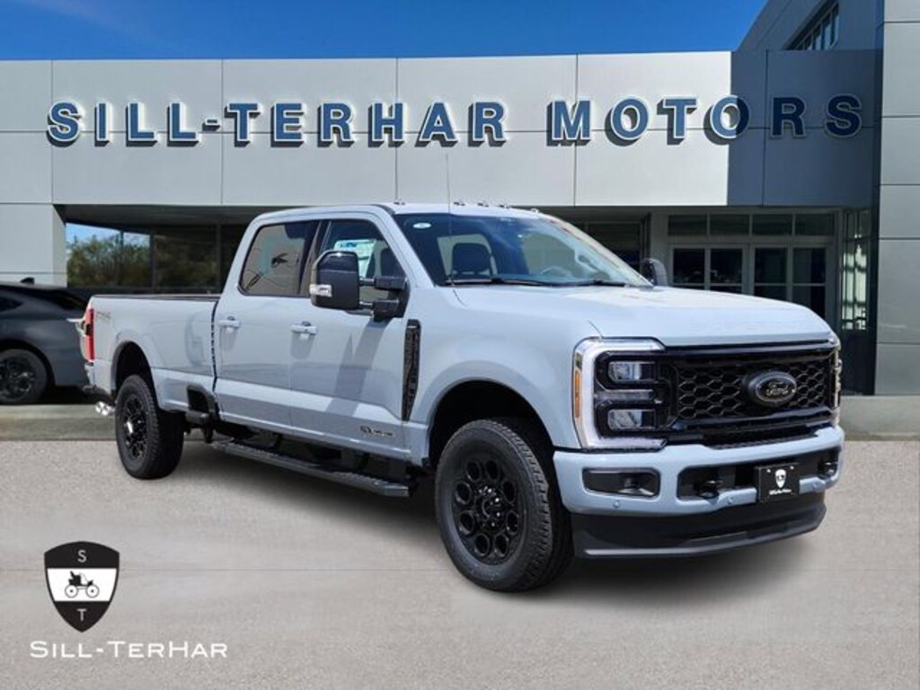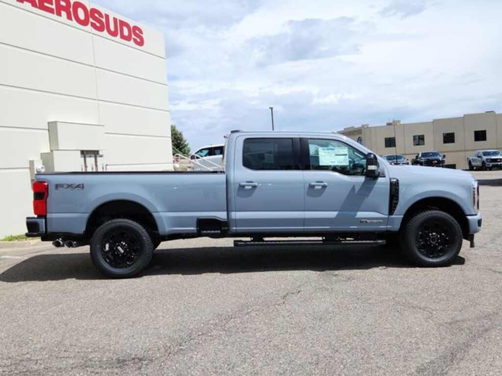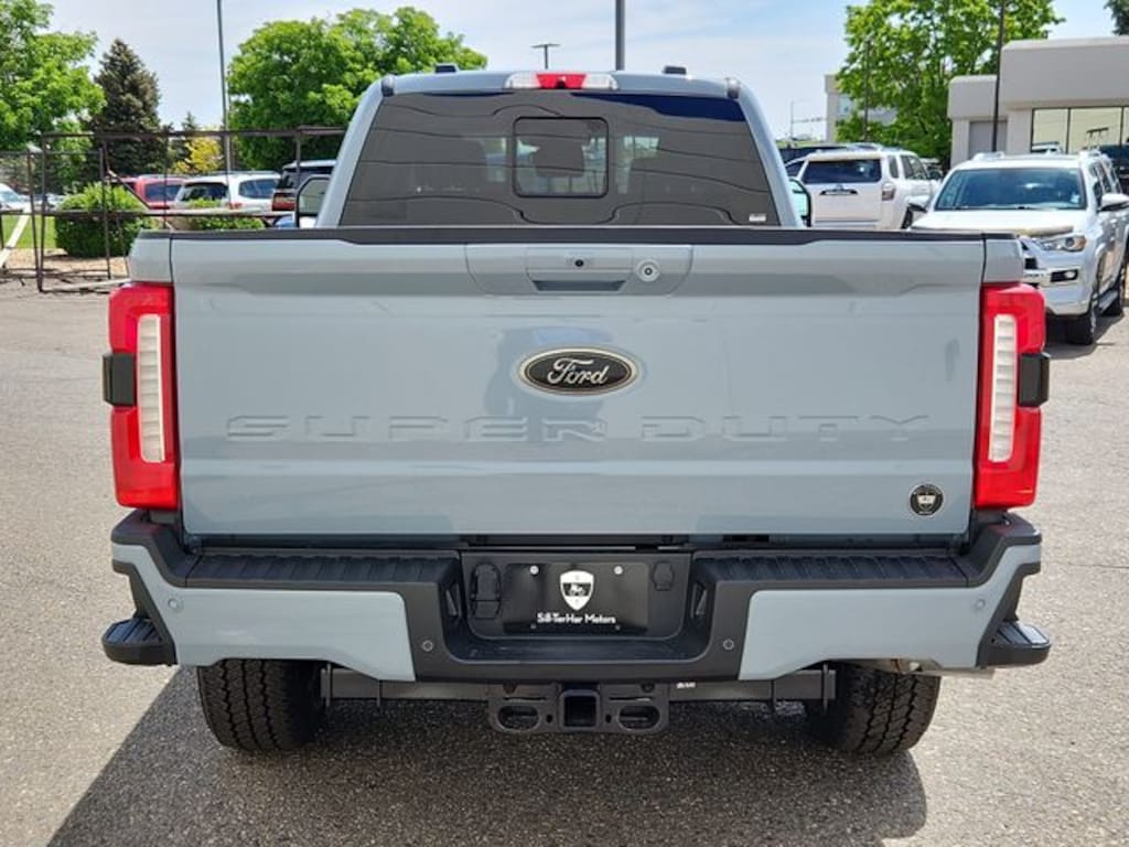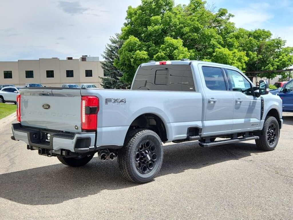 Glacier Gray Metallic TriCoat 2025 Ford F-350SD Lariat 4WD 10-Speed Automatic Power Stroke 6.7L V8 DI 32V OHV Turbodiesel 4-Way Adjustable Headrests, 6" Ebony Black Angular Running Boards, ABS brakes, Alloy wheels, Black Appearance Package, Black Painted Front Grille Surround, Body Color Front & Rear Bumpers, Compass, Ebony Black Painted Mirror Caps, Electronic Stability Control, Front dual zone A/C, Head-Up Display, Heated door mirrors, Heated front seats, Heated rear seats, Illuminated entry, Lariat Ultimate Package, Low tire pressure warning, Navigation System, Power-Deployable Running Boards, Power-Sliding Rear-Window w/Defrost, Privacy Glass, Pro Trailer Backup Assist, Pro Trailer Hitch Assist, Radio: B&O Unleashed Sound System by Bang & Olufsen, Rear Wheel Well Liners (Pre-Installed), Remote keyless entry, SiriusXM Radio w/360L, SYNC 4 w/Enhanced Voice Recognition, Tailgate Step & Handle, Tough Bed Spray-In Bedliner, Traction control, Twin Panel Power Moonroof, Wheels: 20" Machined & Ebony Black High Gloss.