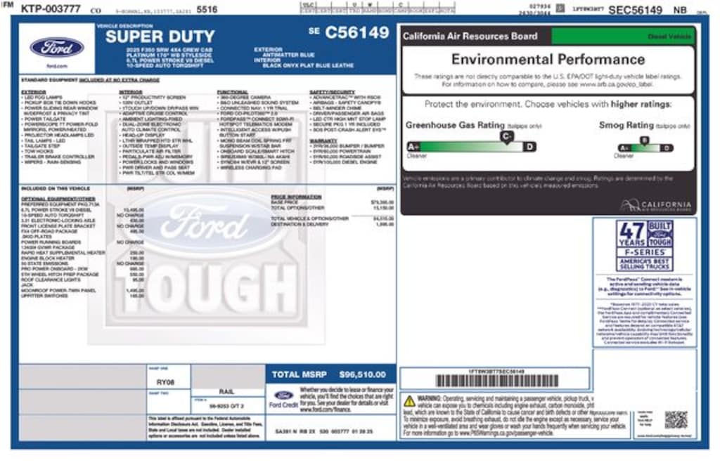 Antimatter Blue Metallic 2025 Ford F-350SD Platinum 4WD 10-Speed Automatic Power Stroke 6.7L V8 DI 32V OHV Turbodiesel This 2025 Ford F-350SD is rare!.