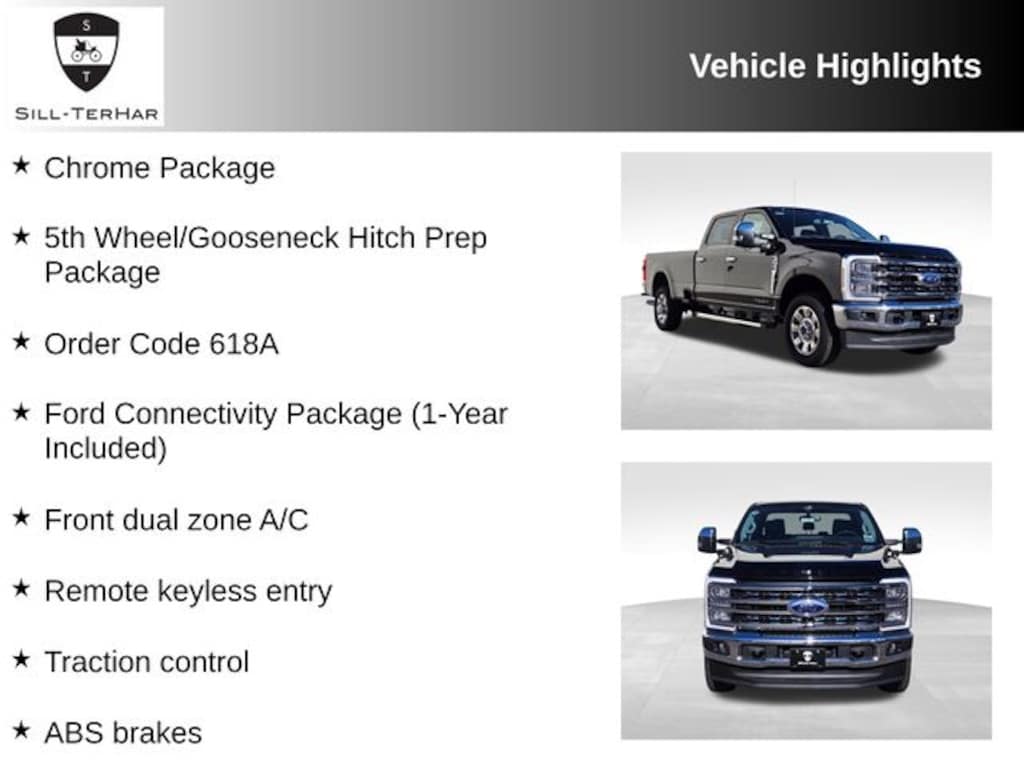 Agate Black Metallic 2026 Ford F-350SD Lariat 4WD 10-Speed Automatic Power Stroke 6.7L V8 DI 32V OHV Turbodiesel 5th Wheel/Gooseneck Hitch Prep Package, 6" Angular Bright Anodized Step Bars, ABS brakes, Alloy wheels, Chrome Door Handles, Chrome Exhaust Tip, Chrome Package, Compass, Electronic Stability Control, Ford Connectivity Package (1-Year Included), Front dual zone A/C, Heated door mirrors, Heated front seats, Heated rear seats, Illuminated entry, Low tire pressure warning, Order Code 618A, Remote keyless entry, Traction control, Twin Panel Power Moonroof, Unique Chrome Mirror Caps, Wheels: 20" Chrome PVD Aluminum.
