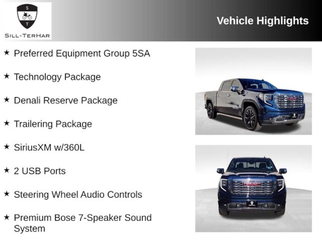 This 2023 GMC Sierra 1500 is rare!, 120-Volt Instrument Panel Power Outlet, 170 Amp Alternator, 2 Charge/Data USB Ports Inside Center Console, 2 Type-C Charge-Only Rear USB Ports, 2 USB Ports, Auto-Locking Rear Differential, Auxiliary External Transmission Oil Cooler, Bed View Camera, Chrome Header w/Signature Denali Chrome Grille, Chrome Recovery Hooks, Chrome Wheel To Wheel Assist Steps, Color-Keyed Carpeting Floor Covering, Compass, Deep-Tinted Glass, Denali Reserve Package, Electric Rear-Window Defogger, Electrical Steering Column Lock, Floor-Mounted Center Console, Front Rainsensing Wipers, GMC Connected Access Capable, GMC MultiPro Power Steps, HD Surround Vision, Heated 2nd Row Outboard Seats, Heated Driver & Front Outboard Passenger Seating, Heavy-Duty Air Filter, Hill Descent Control, Hitch Guidance w/Hitch View, In-Vehicle Trailering App, Integrated Trailer Brake Controller, Keyless Open & Start, LED Cargo Area Lighting, OnStar & GMC Connected Services Capable, Perimeter Lighting, Power Door Locks, Power Front Passenger Windows w/Express Up/Down, Power Front Windows w/Driver Express Up/Down, Power Rake & Telescoping Steering Column, Power Rear Windows w/Express Down, Power Sliding Rear Window w/Rear Defogger, Power Sunroof, Preferred Equipment Group 5SA, Premium Bose 7-Speaker Sound System, Push Button Start, Rear Cross Traffic Braking, Rear Pedestrian Detection, Rear Wheelhouse Liners, Remote Vehicle Starter System, SiriusXM w/360L, Spray-On Pickup Bed Liner w/Denali Logo, Steering Wheel Audio Controls, Technology Package, Theft Deterrent System (Unauthorized Entry), Trailer Camera Provisions, Trailer Side Blind Zone Alert, Trailering Package, Ultrasonic Front & Rear Park Assist, Universal Home Remote, Ventilated Driver & Front Passenger Seats, Wheels: 22" x 9" Painted Aluminum, Wi-Fi Hotspot Capable, Wireless Charging, Wireless Phone Projection.