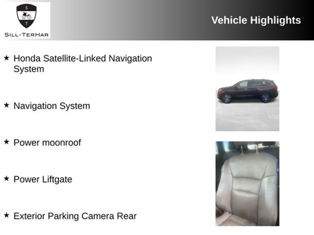 - Enjoy the convenience of a Power Liftgate, the precision of the Honda Satellite-Linked Navigation System, and the enhanced visibility of the Exterior Parking Camera Rear.