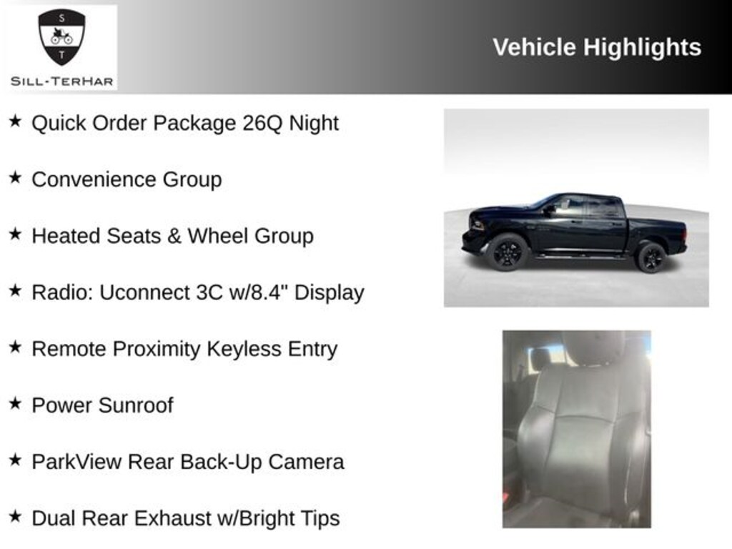 This 2017 Ram 1500 is rare!, 4x4 Flat Black Badge, 8.4" Touchscreen Display, Auto High Beam Headlamp Control, Black Painted Honeycomb Grille, Black Ram Tailgate Nameplate, Convenience Group, Dual Rear Exhaust w/Bright Tips, Flat Black 5.7L Hemi Badge, Flat Black Ram 1500 Badge, Heated Front Seats, Heated Seats & Wheel Group, Heated Steering Wheel, Keyless Enter-N-Go, ParkView Rear Back-Up Camera, Power Sunroof, Quick Order Package 26Q Night, Radio: Uconnect 3C w/8.4" Display, Rain Sensitive Windshield Wipers, Ram 1500 Night Special Edition, Remote Proximity Keyless Entry, Wheels: 20" x 9" Semi-Gloss Black Aluminum.