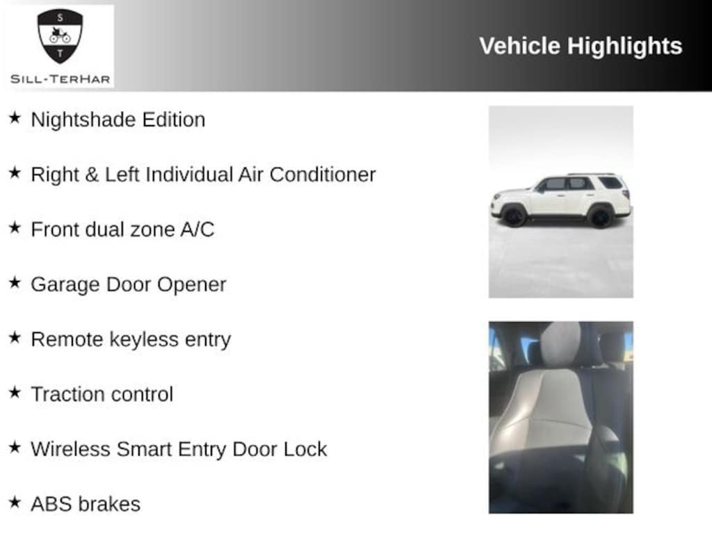 ABS brakes, Active Cruise Control, Black Power Heated Mirrors, Black Roof Rails, Compass, Electronic Stability Control, Exterior Parking Camera Rear, Front dual zone A/C, Garage Door Opener, Heated door mirrors, Heated front seats, Heated/Ventilated Front Bucket Seats, Illuminated entry, Low tire pressure warning, Moonroof w/Tilt Up & Slide, Nightshade Edition, Nightshade Leather Seat Trim, Power moonroof, Remote keyless entry, Right & Left Individual Air Conditioner, Traction control, Wheels: 20" Black Alloy, Wireless Smart Entry Door Lock.